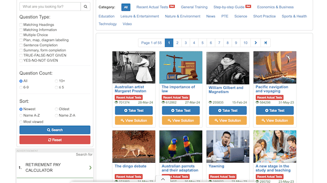 またリーディングの練習問題には検索機能がついており、自分が苦手とするトピックを重点的に練習できるのもこちらのサイトならではの特徴。各問題の解答に対する解説はないですが、IELTSらしい長文問題を数多くこなせるため、解答の正確性だけでなくスピードも鍛えたい学習者におすすめです。