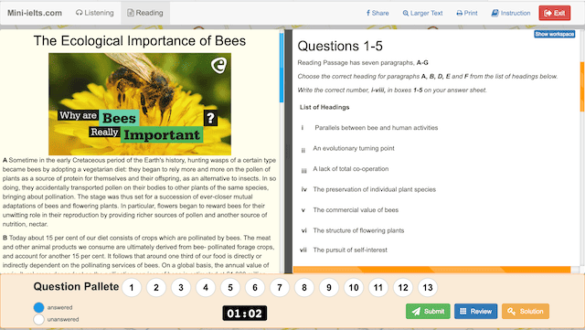 Mini-ielts.comは、IELTS対策のリスニングとリーディングの練習問題に特化した無料学習サイトです。アカウント登録が一切必要なく、豊富な問題数、さらに時間測定機能付きなので、時間配分や設問の読み取りに慣れるためのトレーニングにも役立ちます。