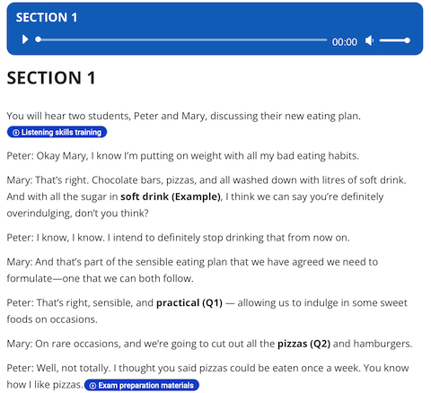 サイト内の問題は全て出題形式及び解答形式はIELTS試験に沿ったものですが、本試験のように全パートを通しで練習できるわけではなく、1パートごとに練習する構成になっています。(※全パートを通しで練習したい人にはIELTS Online Tests.comやBritish Council – Free Onlineがおすすめ)