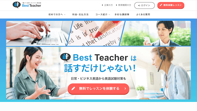 ベストティーチャーは、IELTS試験対策に本格的に取り組みたい人向けのオンライン英会話サービスです。高価格帯とされるIELTS専門講座とは違い、月額16,500円で好きなだけIELTS試験対策のレッスンが受けられるのでコスパの良さは飛び抜けています。